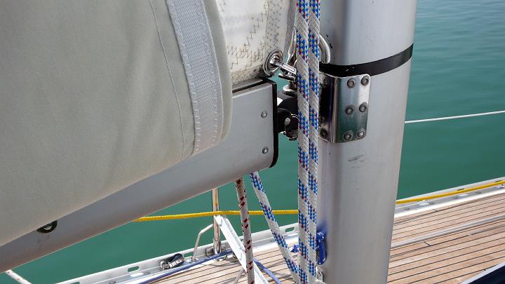 | Umlenkung der Leine für Reff 1 ins Cockpit | |
