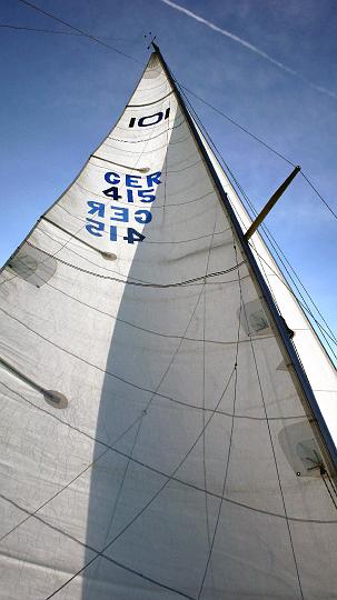 | Segelzeichen des Schiffstyps 1O1 und Segelnummer GER 415 im Großsegel | |